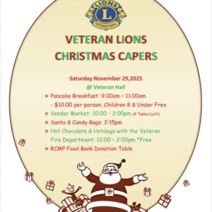 Veteran Christmas Capers Veteran Christmas Capers Veteran & District Lions Club https://www.facebook.com/veteranlions ... 29 Nov 9:30 am - 2:00 pm