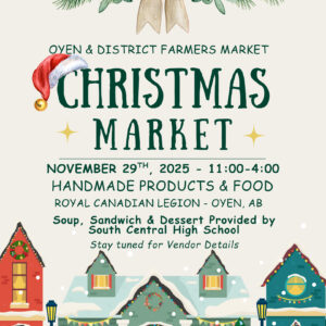 Oyen & District Farmers’ Market Christmas Market OYEN & DISTRICT FARMERS MARKET CHRISTMAS MARKET NOVEMBER 29TH 2025 - ... 29 Nov 11:00 am - 4:00 pm ROYAL CANADIAN LEGIONOyen, AB